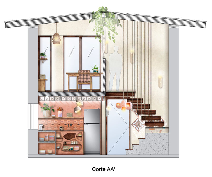 Ce projet brésilien s'inscrit dans une volonté de bioconstruction et le design d'intérieur pensé perpétue cette volonté en utilisant les ressources et matériaux présent sur place ainsi que des éléments propres à l'architecture Nordestino du Brésil tel que les "cobogó".